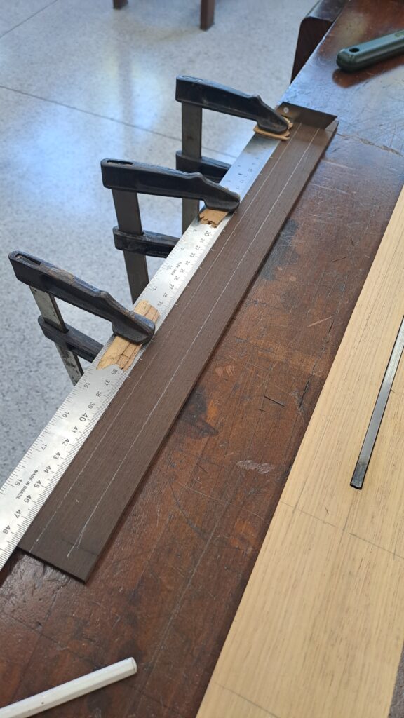Imagem 04 – prendendo a régua para fazer a marcação da localização exata dos trastes.
